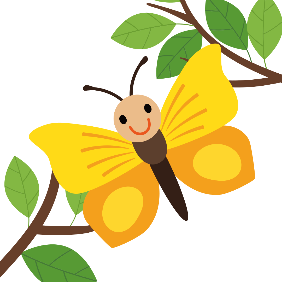 윗날개보다 약간 작은 반달 모양을 아래쪽에 그려서 아랫날개를 만들어요. 나비의 날개는 비늘로 덮여 있어요. 그 비늘이 햇빛을 받아서 반짝이고, 날개에 예쁜 색깔과 무늬가 나타나죠. 그 비늘 덕분에 나비는 색이 다양하고 아름답게 보여요!