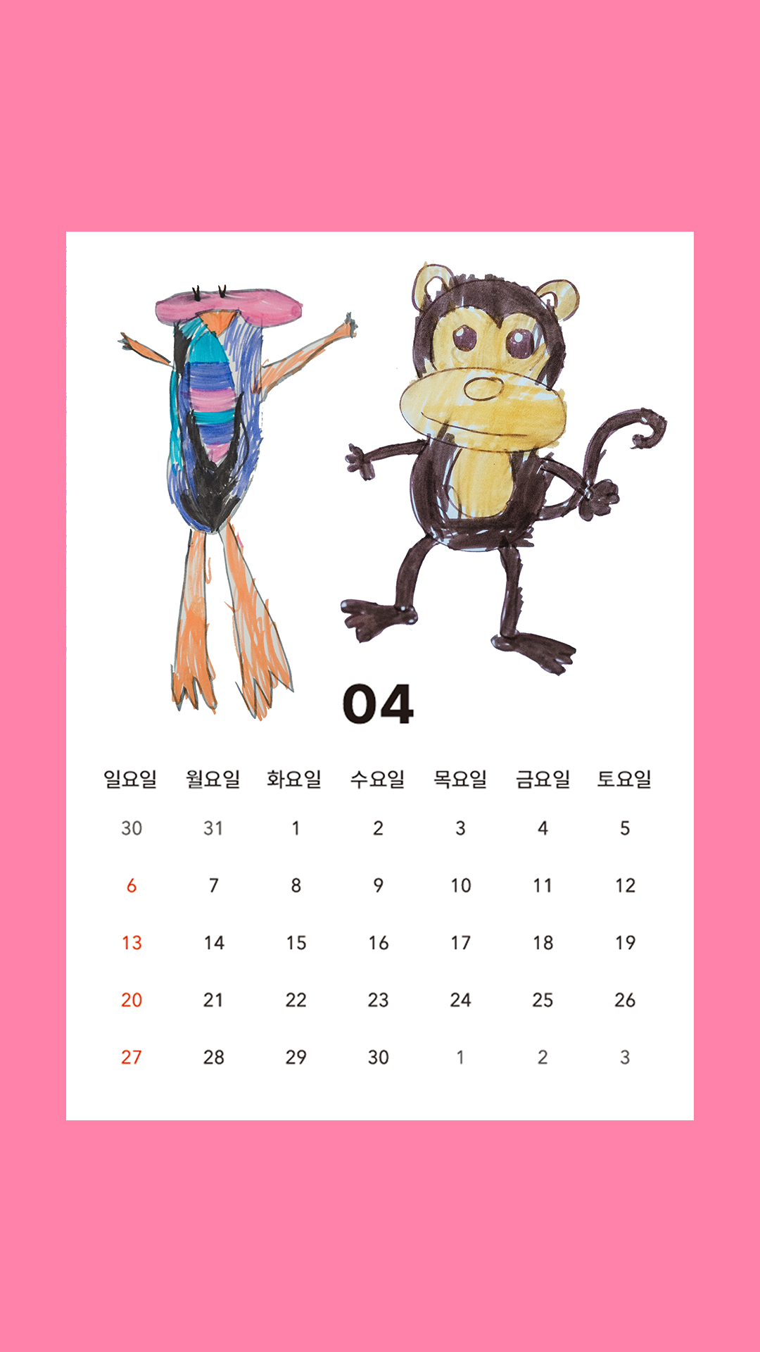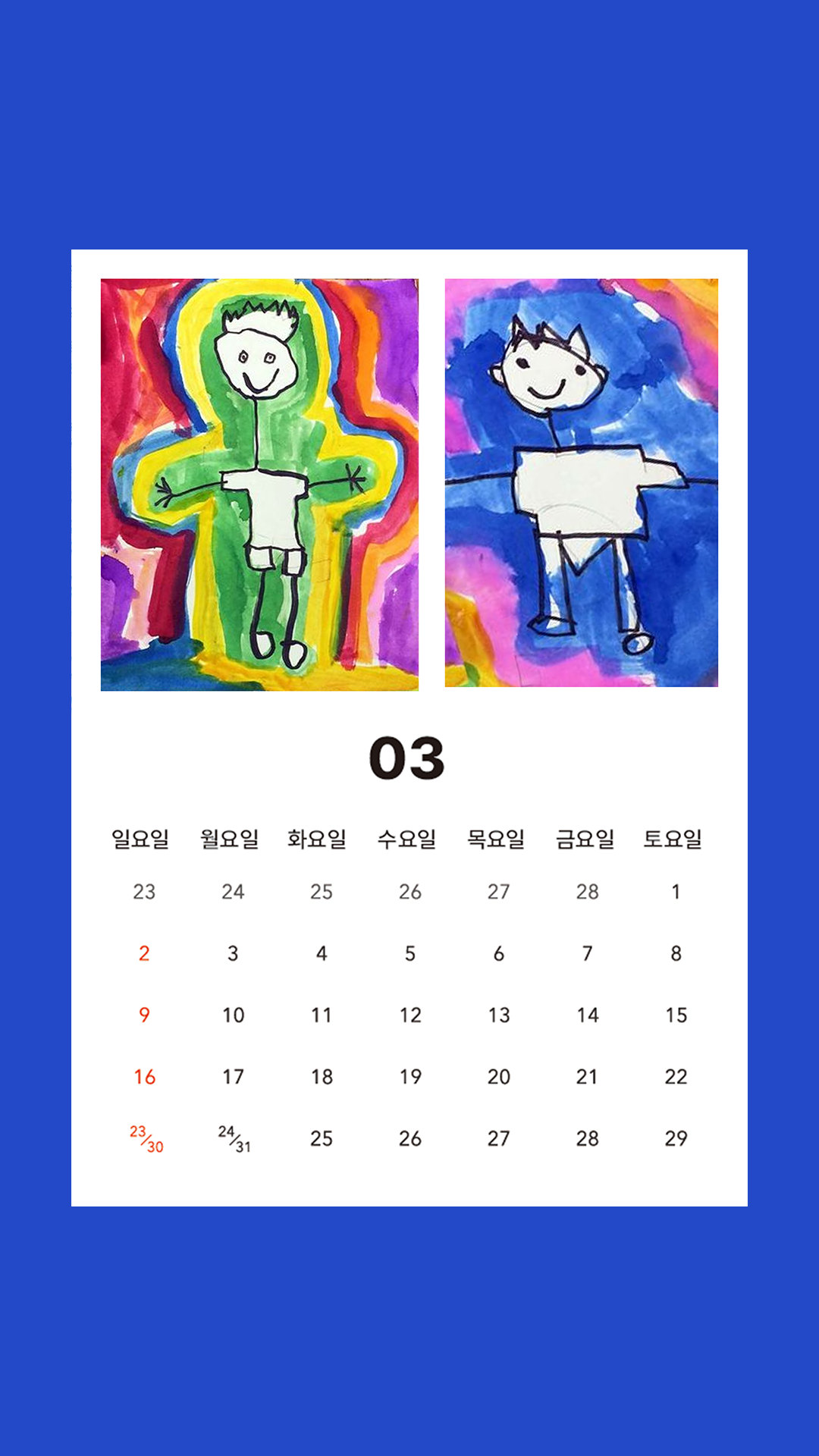 그림 달력의 장점은 매달 아이의 작품을 볼 수 있다는 것이 좋아요!