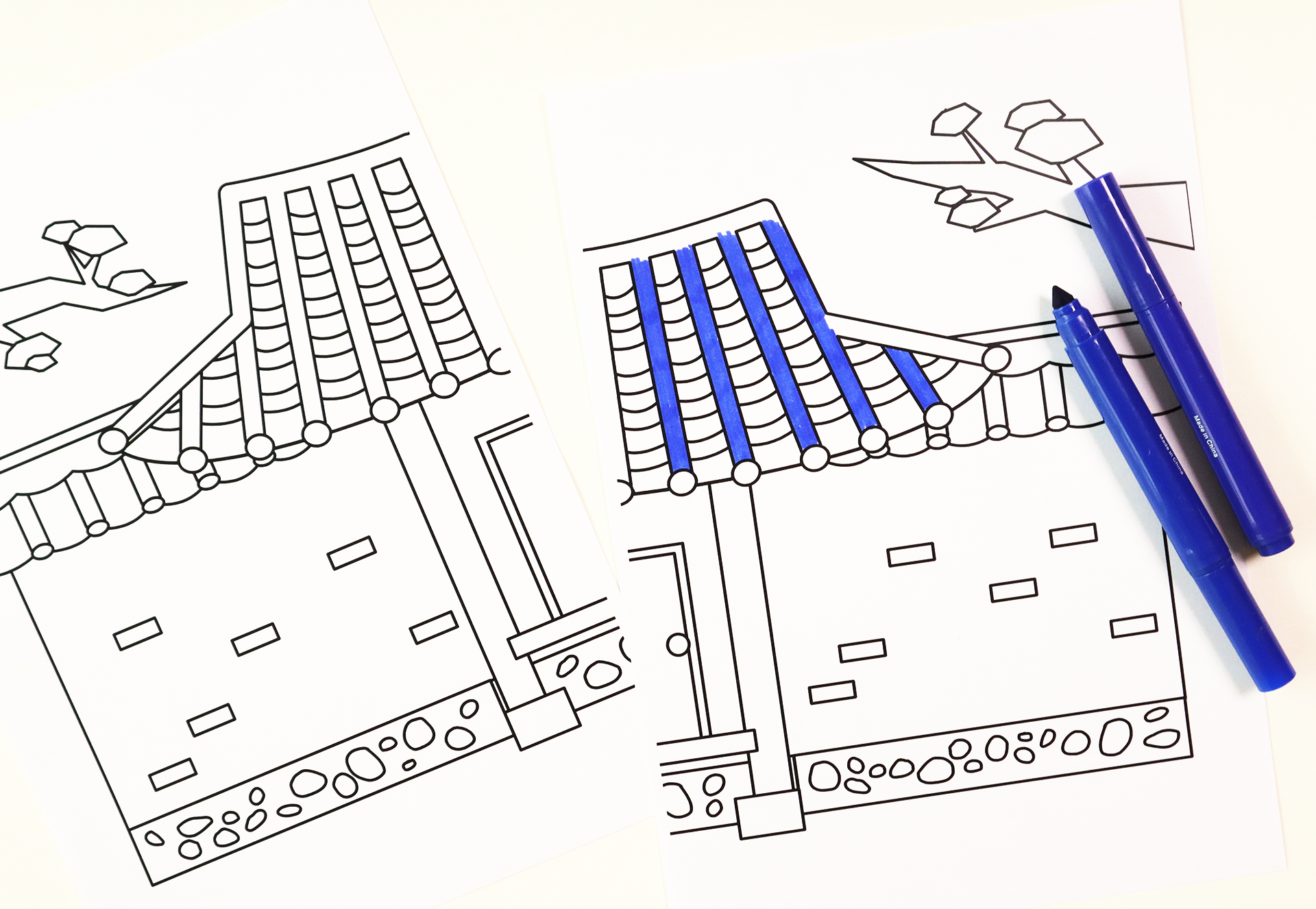 준비된 기와집 도안을 원하는 색으로 색칠해 보세요.