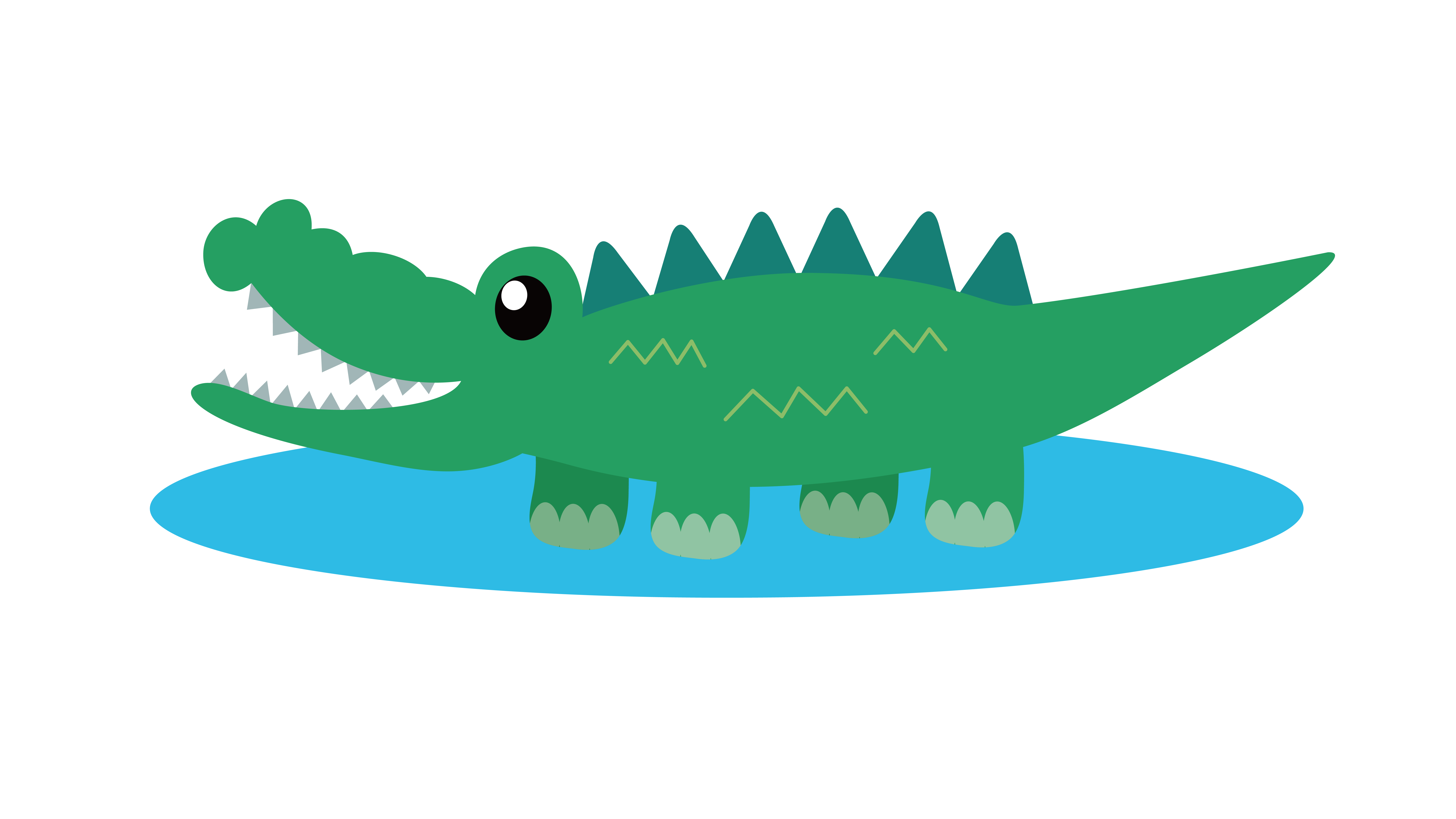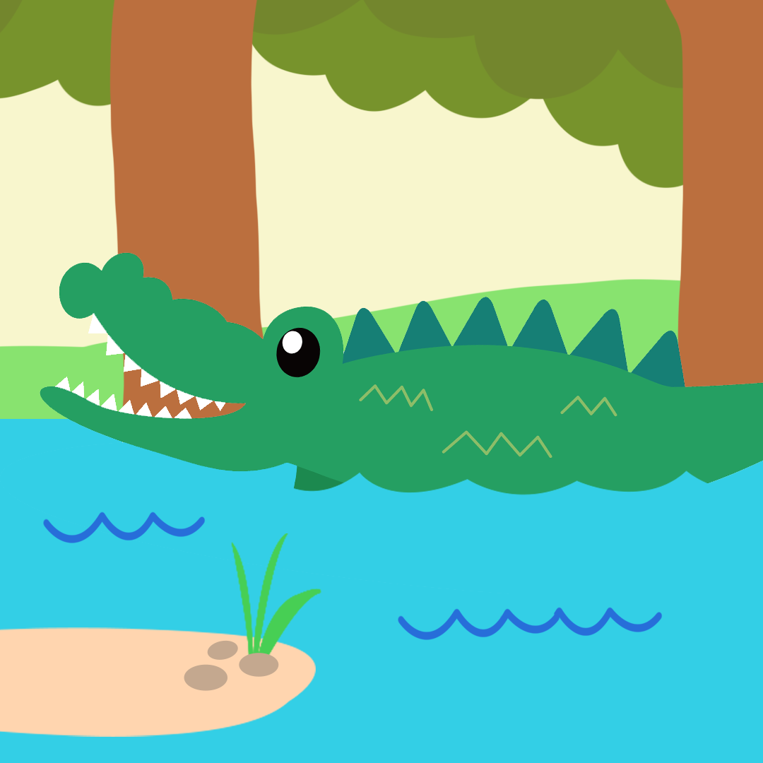 악어가 있는 물 웅덩이를 둥근 원으로 표현하고, 악어의 날카로운 이빨도 그려주세요. 악어는 수영을 잘하는 동물이에요. 물속에서 꼬리를 휘저으며 빠르게 움직일 수 있고, 작은 다리로도 잘 수영할 수 있어요. 물속에서 살아가는 이유는, 사냥을 잘 할 수 있고, 온도 조절이 가능하기 때문이에요.