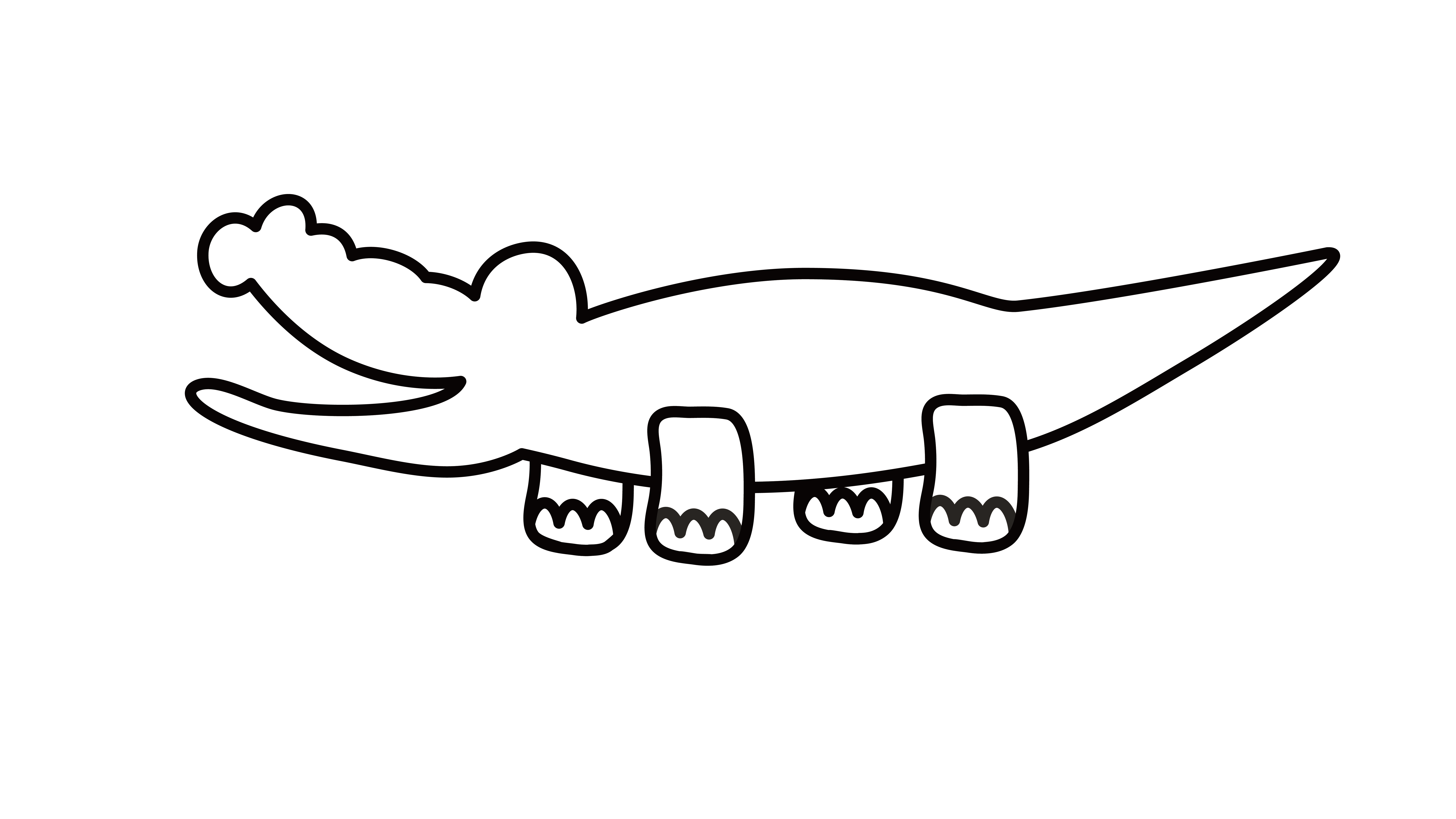 이제 악어의 몸과 긴 꼬리를 그려요.