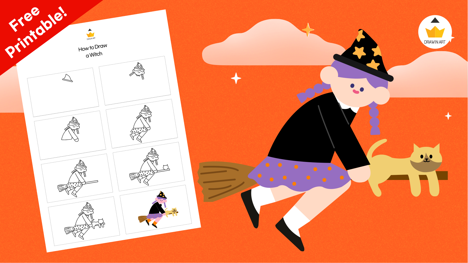 When Halloween comes around, kids love exploring fun characters like witches, ghosts, and pumpkins. To celebrate the season, DRAWINART has prepared a How to Draw a Witch Step by Step Free Printable that’s full of Halloween spirit. Witches, with their bla