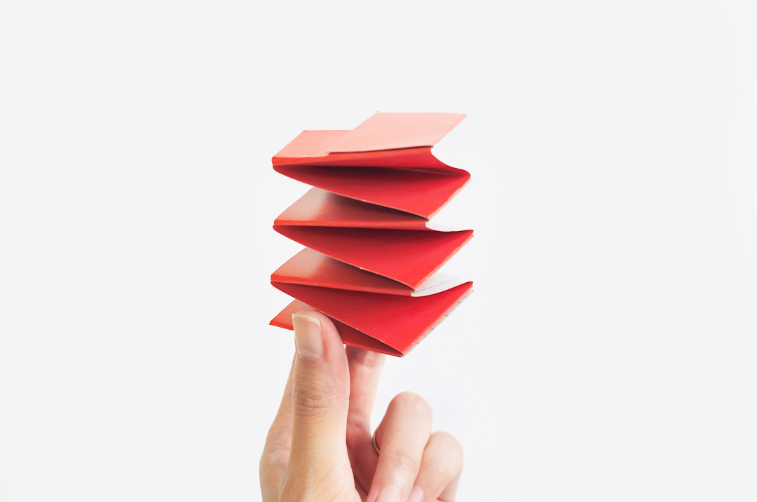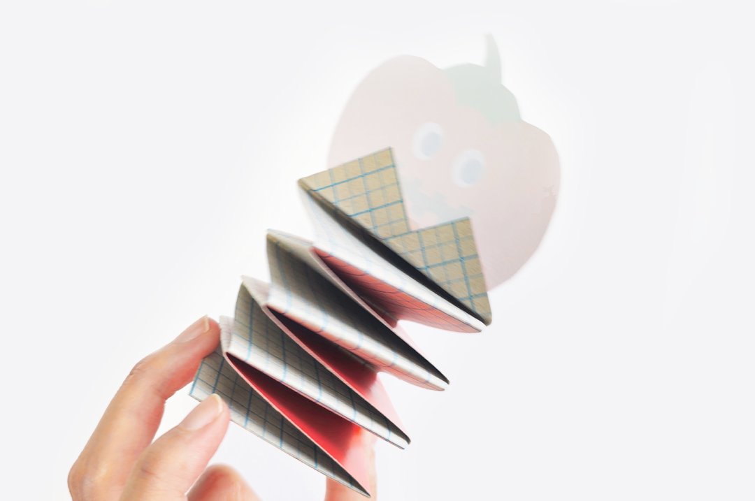잘라낸 색도화지는 지그재그로 접어 스프링처럼 튀어오를 수 있게 만들어주세요.