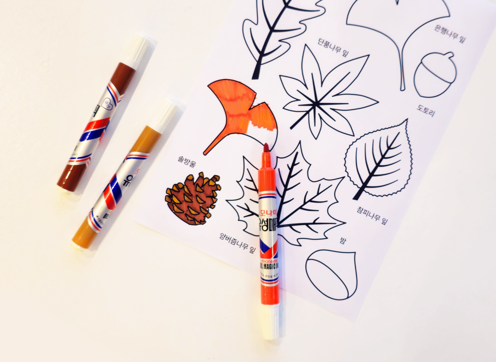 낙엽의 색을 자유롭게 칠하고 꾸며볼 수 있는 색칠용 도안도 함께 준비되어 있어요. 색의 변화와 계절의 특징을 표현하며 자연의 색감을 느껴보세요.