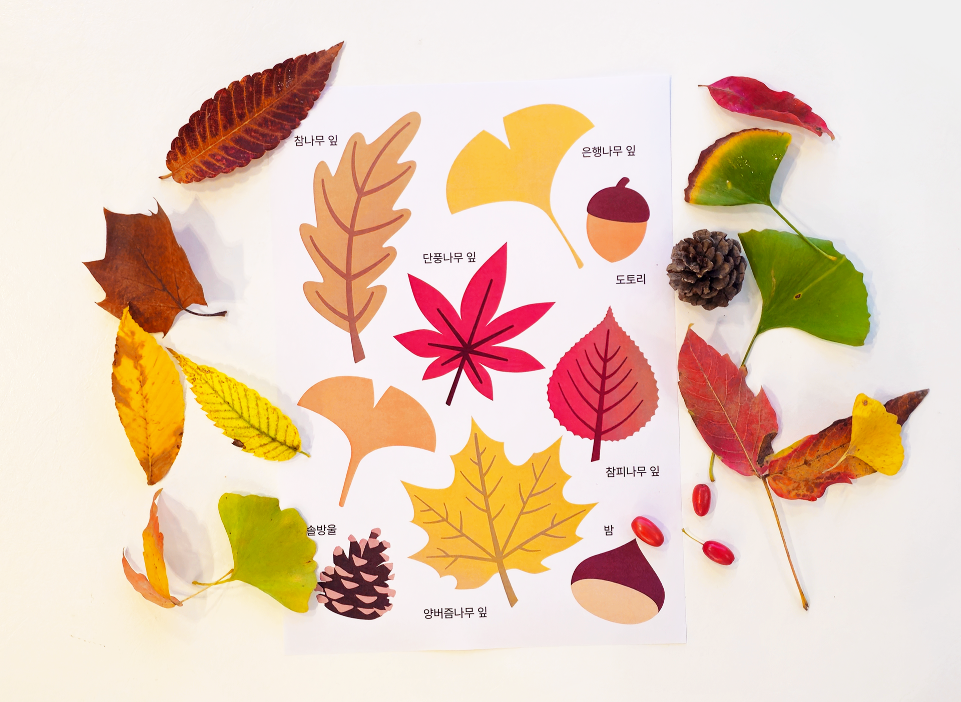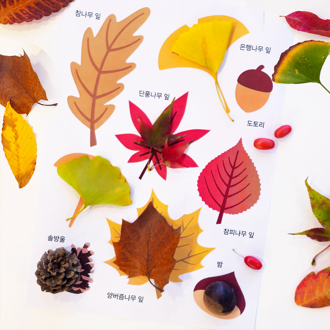 가을 자연물 낙엽 찾기 놀이 도안 : 드로윈아트