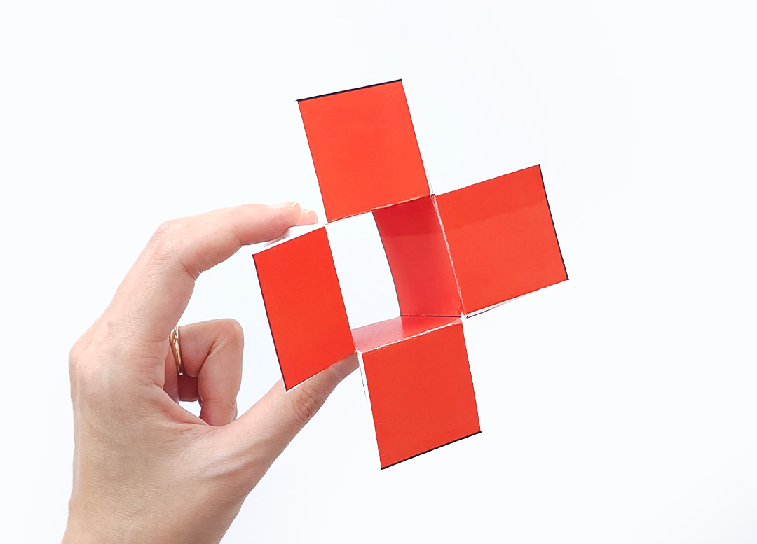 도안에 포함된 직사각형 조각을 가위로 잘라 네모 기둥 모양으로 만들어 주세요.