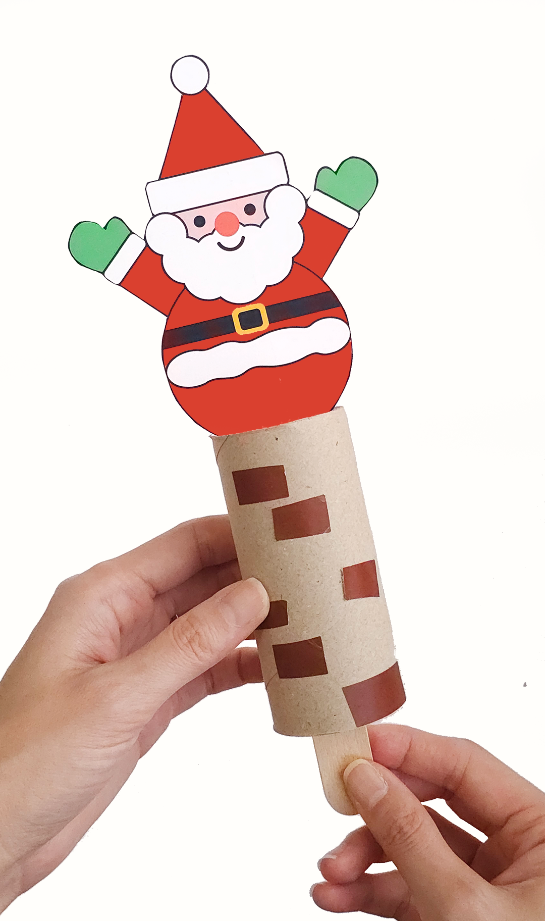 막대를 잡고 위아래로 움직여 보세요. 산타가 굴뚝 사이를 오가는 재미난 모습이 연출됩니다. 우리 집에도 귀여운 산타가 찾아온 것 같은 느낌을 만들어 보세요 🎅🏻