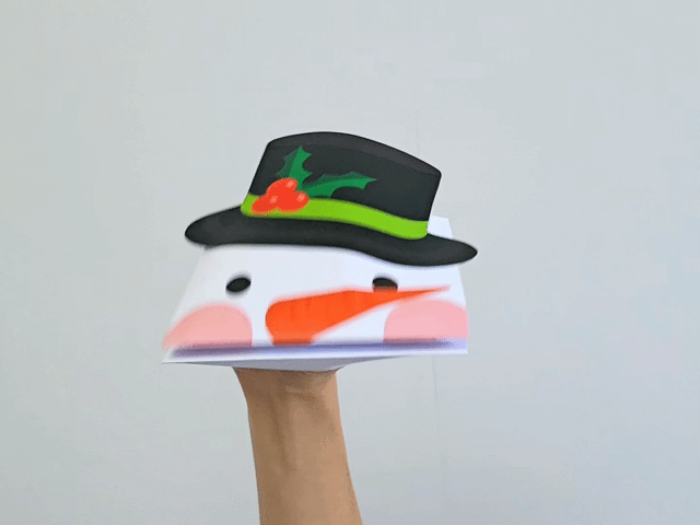 눈사람에는 모자를, 산타에는 빨간 모자를, 루돌프에는 뿔을 붙여 마무리해요.