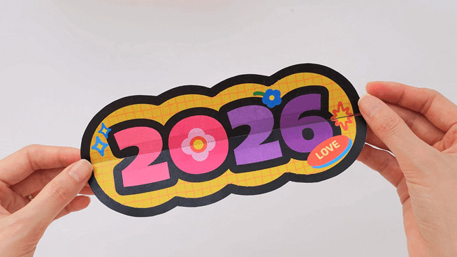 접힌 날개 위에 ‘2026’ 숫자를 반씩 나누어 붙입니다.