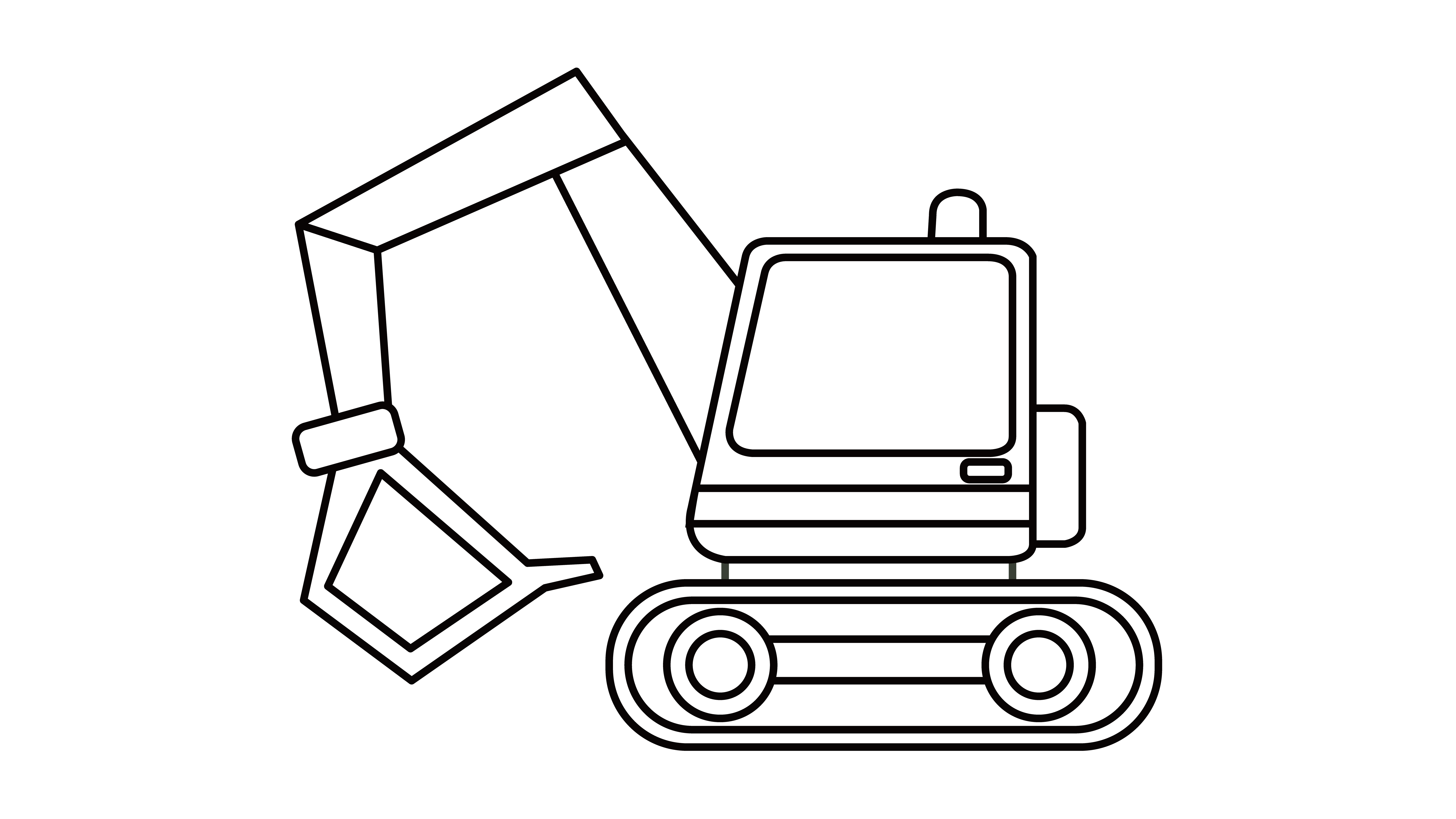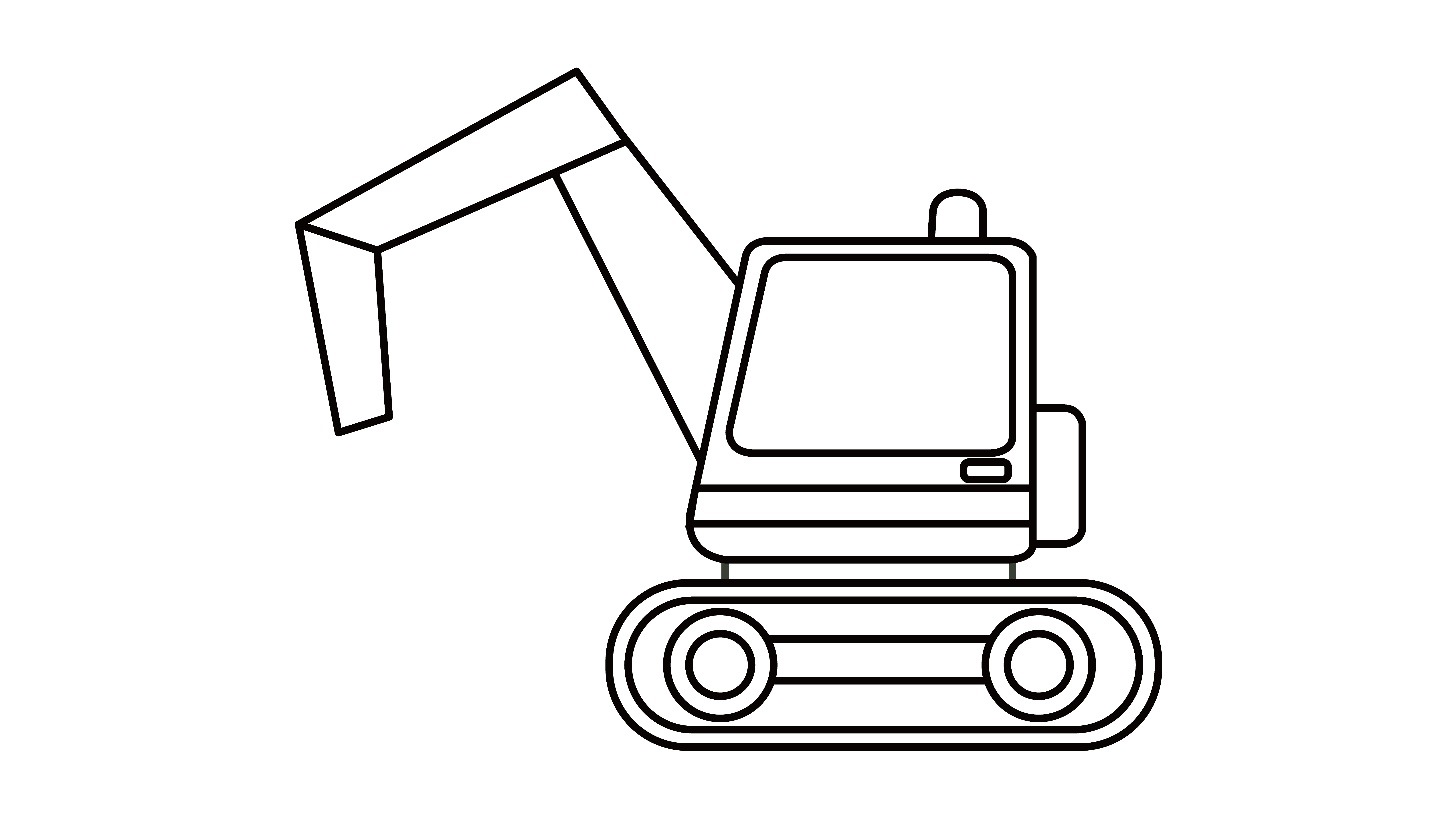 포크레인은 흙을 파거나 무거운 물건을 옮길 때 사용하는 작업용 자동차예요. 공사 현장에서 자주 만나볼 수 있어 아이들에게 익숙한 탈것이지요. 그림을 그릴 때는 먼저 사람이 앉는 운전석 부분부터 시작해요.