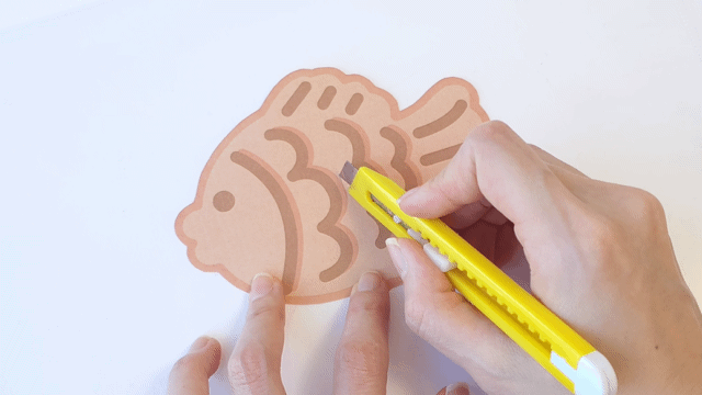 붕어빵을 실제로 여는 느낌을 살리기 위해, 도안의 가운데 부분에 십자가 모양으로 조심스럽게 칼집을 넣어줍니다. 이 과정은 교사의 도움 아래 안전하게 진행해 주세요.