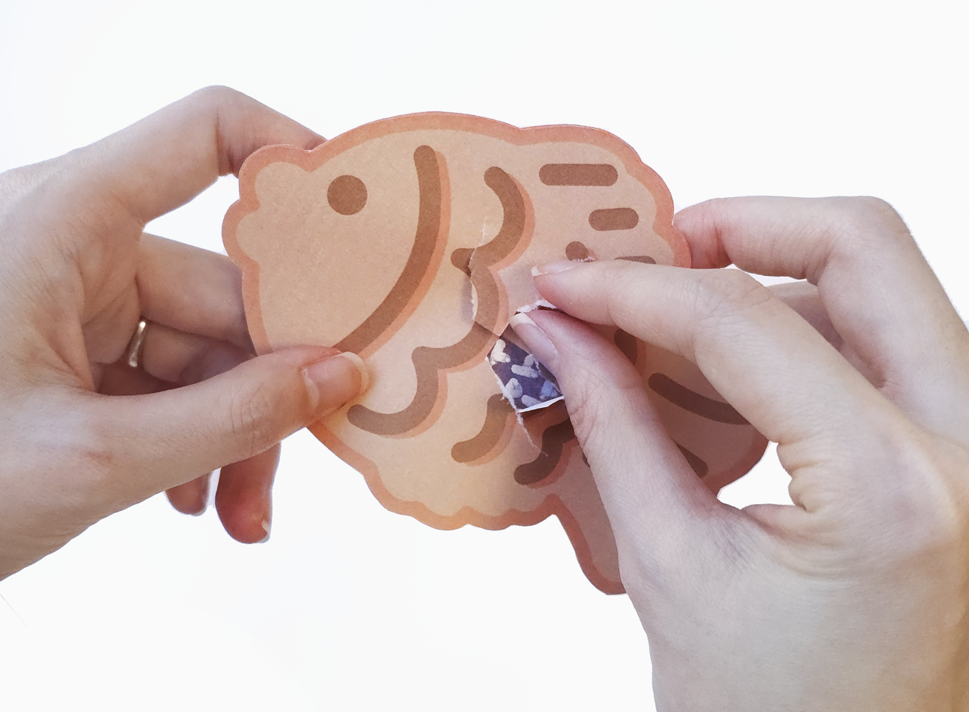 메시지가 적힌 부분은 피해 가장자리만 풀로 붙인 뒤, 그 위에 붕어빵 도안을 덮어 마무리합니다. 안쪽 내용이 가려지면서 열어보는 재미가 더 살아나요.