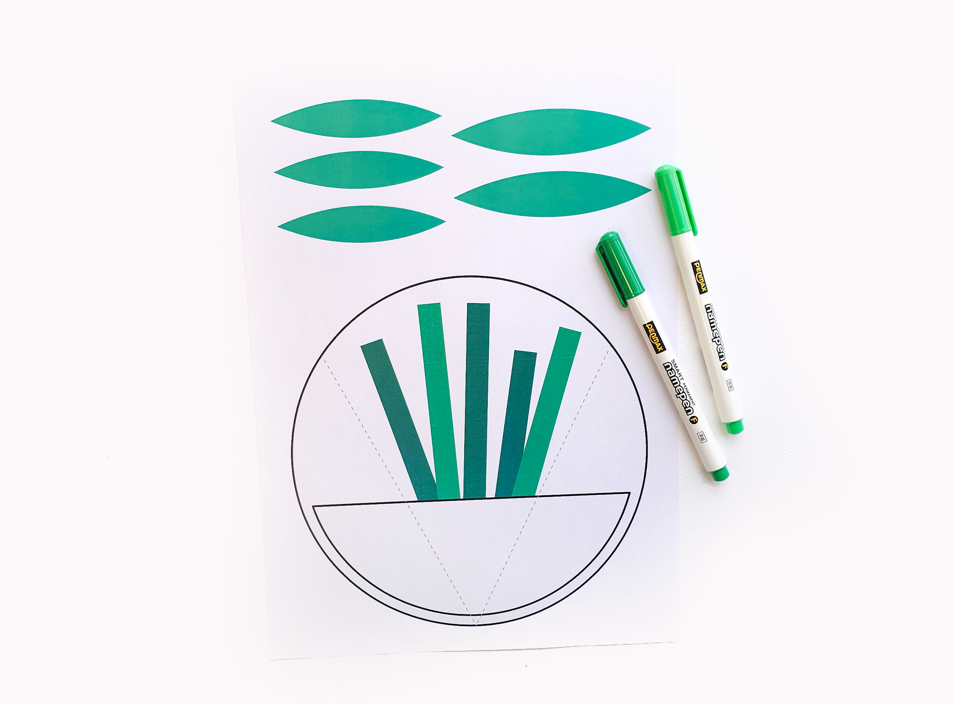 꽃과 잎, 동그라미 도안의 외곽선을 가위로 오려 주세요.