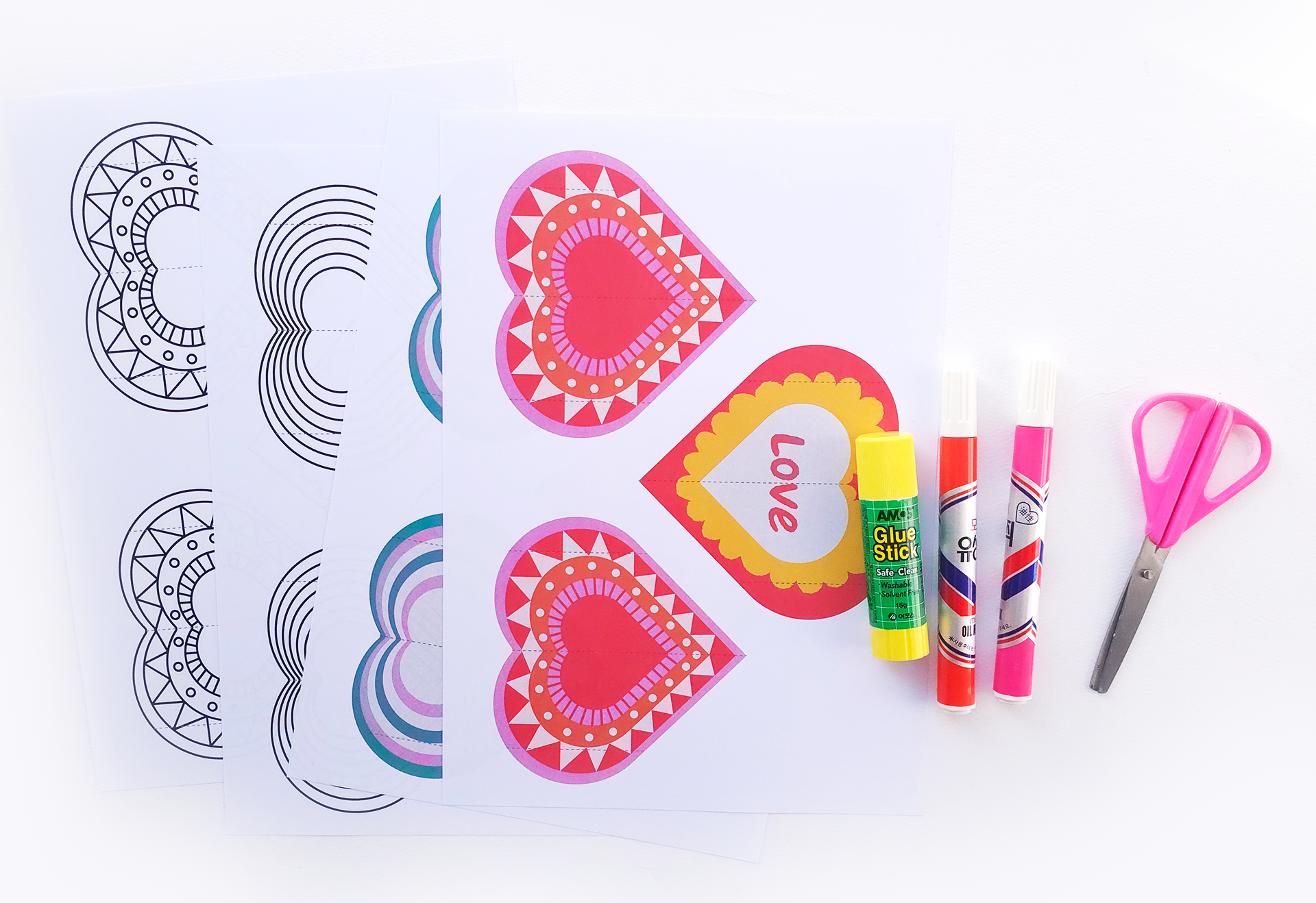 먼저 도안을 아이의 개성이 담기도록 자유롭게 색칠해 주세요. 색을 고르며 “이 색은 어떤 마음일까?” 하고 이야기 나누는 시간도 참 좋아요. 발렌타인데이, 어버이날, 스승의날에 전하고 싶은 짧은 문장을 적어 보며 마음을 글로 표현하는 경험도 더해 보세요.
